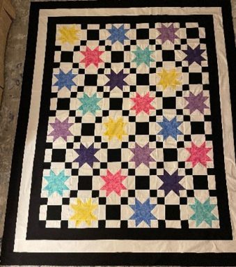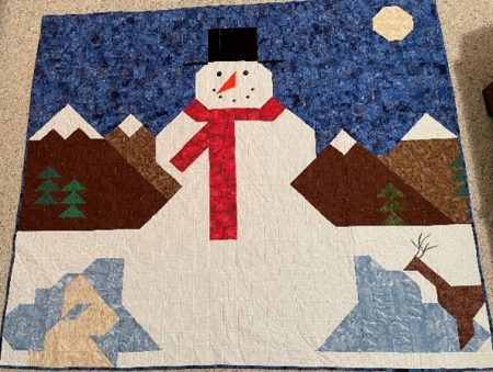 A family member’s request for a geometric (non-appliqué) snowman quilt resulted in this 56” piece.
