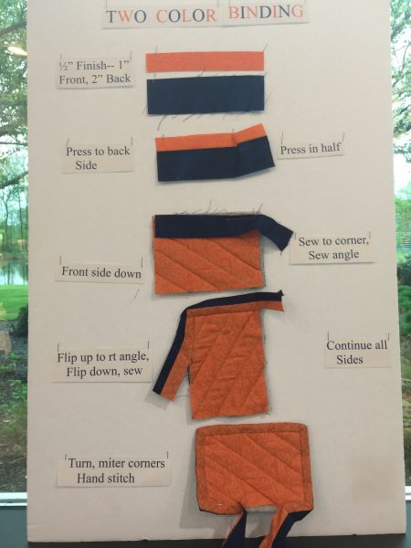 GAAQG member Jan Roys taught a very popular demonstration of how to apply a two-color binding to a quilt project at the guild’s May 19, 2018 Quilt Day meeting.